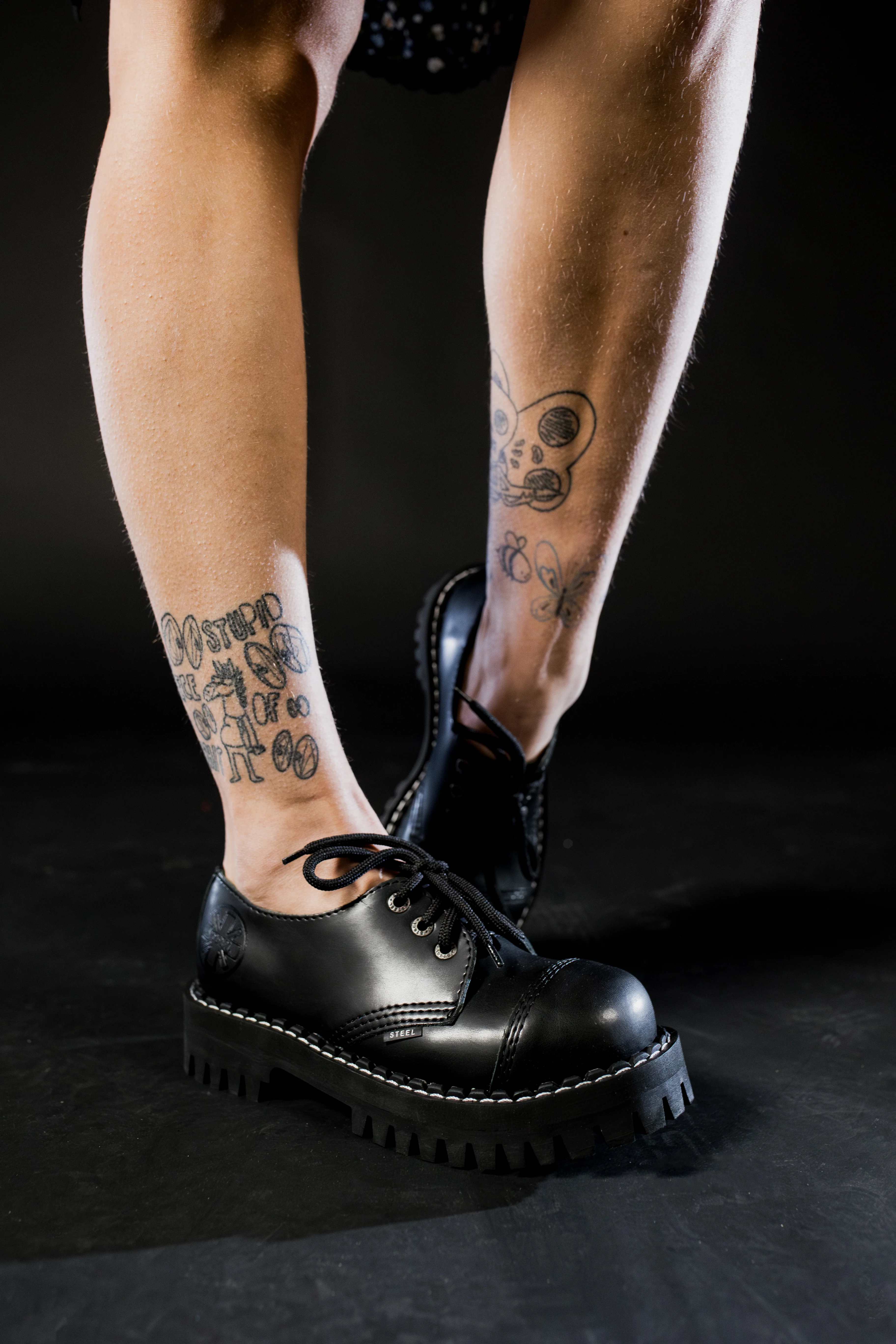 Model znanej europejskiej marki STEEL. Prezentowany model buta to klasyczny GLAN 3-dziurowy w kolorze CZARNYM (black). Jest to bestseller wśród glanów. Wykonany ze skóry naturalnej z metalowym noskiem oraz czarną PODWYŻSZANĄ gumową podeszwą z wkrętami typu MONSTER o wysokości 4,5 cm.