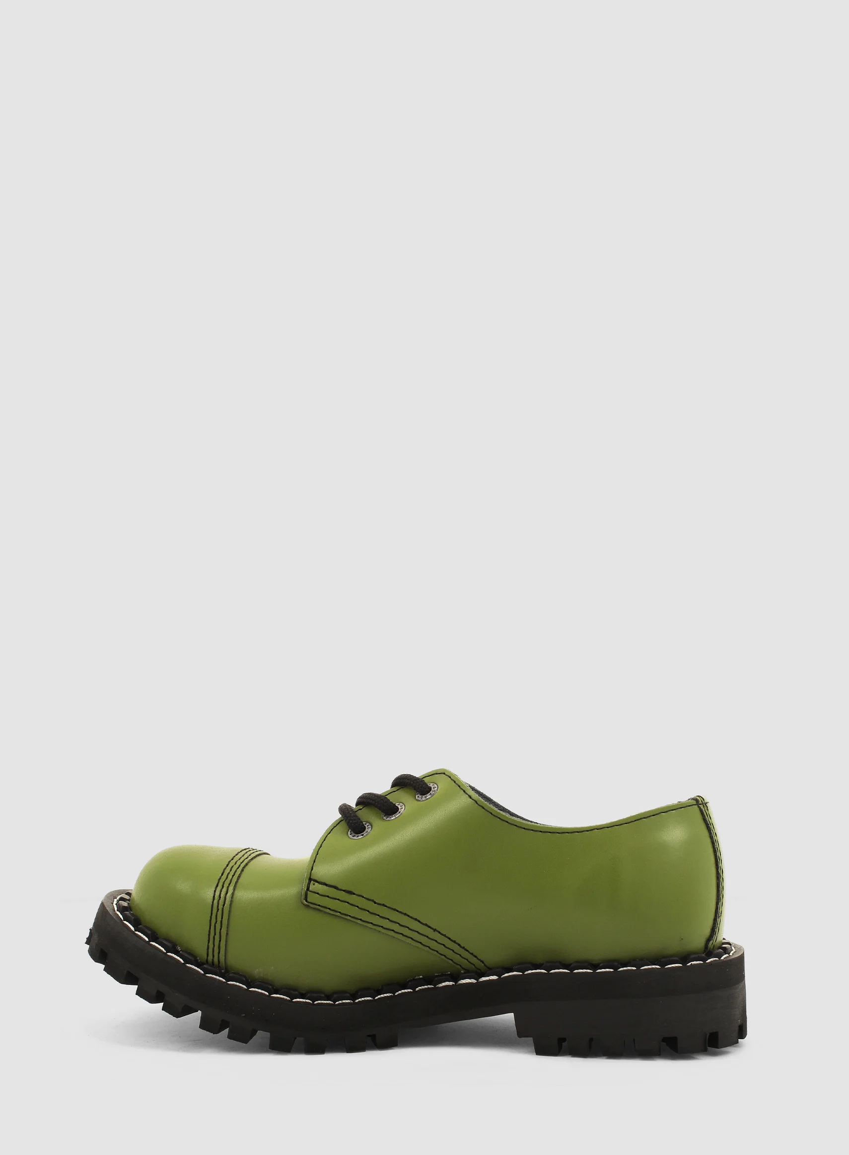 Model znanej europejskiej marki STEEL. Prezentowany model buta to klasyczny GLAN 3-dziurowy w kolorze KHAKI. Wykonany ze skóry naturalnej z metalowym noskiem oraz czarną gumową podeszwą z wkrętami.