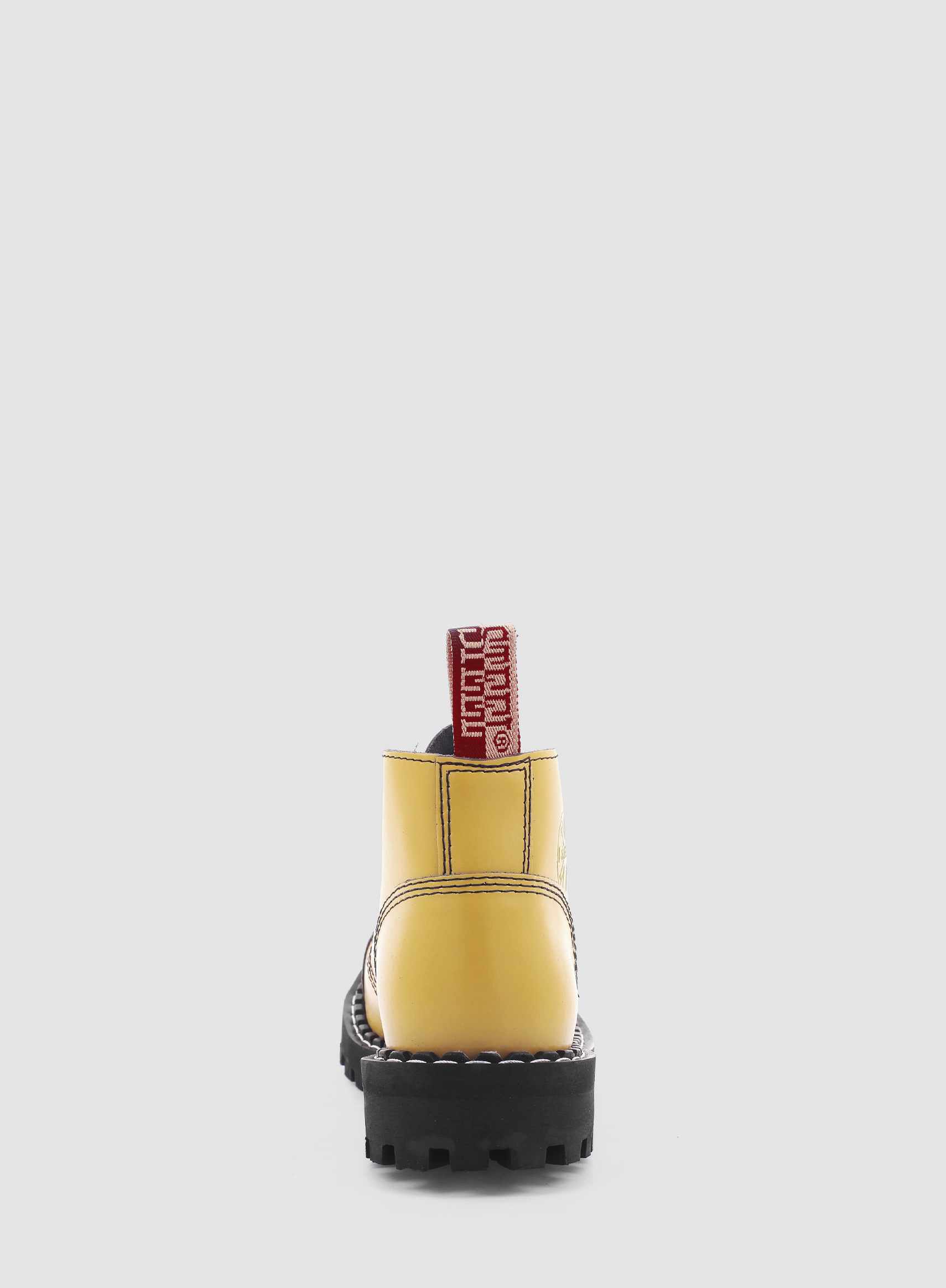 Model znanej europejskiej marki STEEL. Prezentowany model buta to klasyczny GLAN 4-dziurowy w kolorze ŻÓŁTYM (yellow). Jest to bestseller wśród glanów. Wykonany ze skóry naturalnej z metalowym noskiem oraz czarną gumową podeszwą z wkrętami.