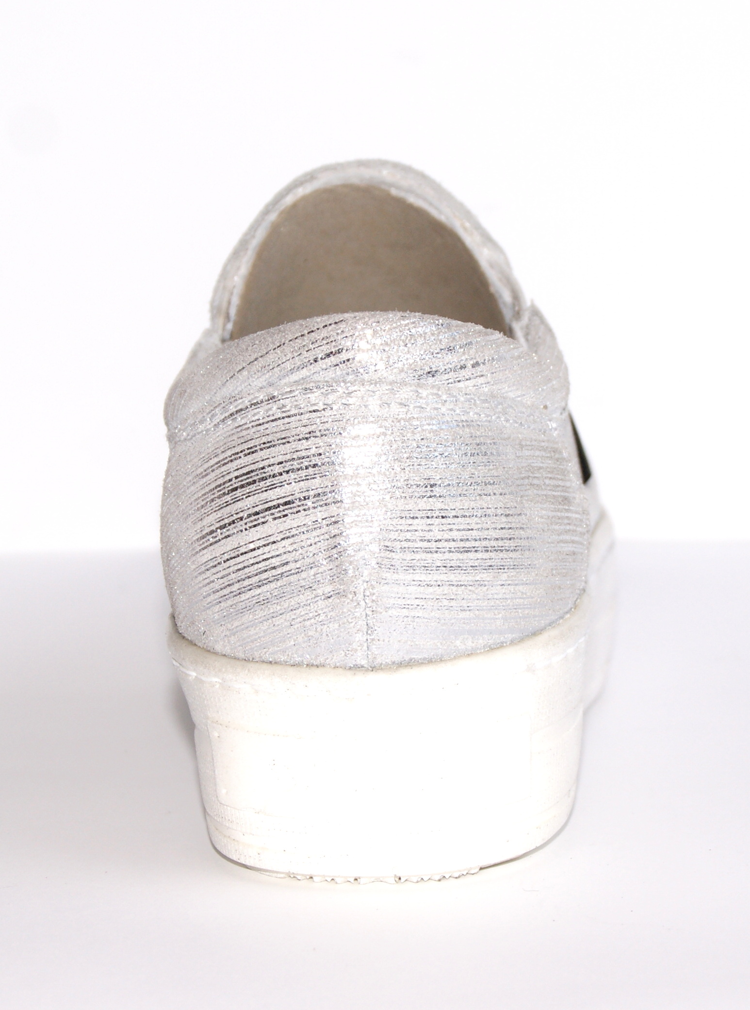 TENISÓWKI DAMSKIE SKÓRZANE SZARO-SREBRNE 350/D-160/MON-BIA
