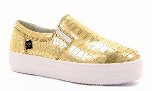 TENISÓWKI DAMSKIE SKÓRZANE ZŁOTE 350/D-125/MON-BIA